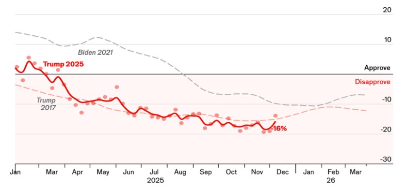 Argentinien: Mehr als 60 Prozent der Trump-Anhänger lehnen seine Wirtschaftshilfe (ca. 20 Milliarden Dollar) für den argentinischen Präsidenten Milei ab.